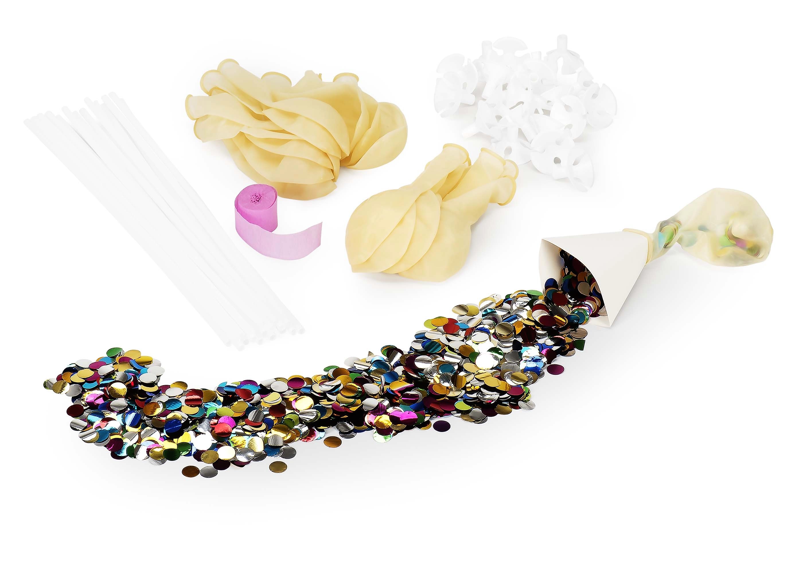 דרך פשוט מושלמת להכניס צבע ועניין לכל חגיגה! הכניסו לכל בלון פתיתי קונפטי צבעוניים, נפחו וצפו בהם מתפזרים בתוכו כמו שלג של שמחה, מתעופפים ומהפנטים. אין ספק שיכניסו לאירוע שלכם המון שמחה וצבעוניות. חברו את המקלות והסרטים וצרו לכם זר בלונים מהאגדות. אפשר גם לנפח בהליום. ומי שרוצה ניתן גם לפוצץ בסיום האירוע..ולצפות במופע.. מושלם לכל חגיגה – ימי הולדת, בריתות, מסיבת רווקות וכל סיבה למסיבה. באריזה 20 בלונים עמידים ואיכותיים, קונפטי מבריק, מקלות וסרטי קרפ ורודים לקשירה.