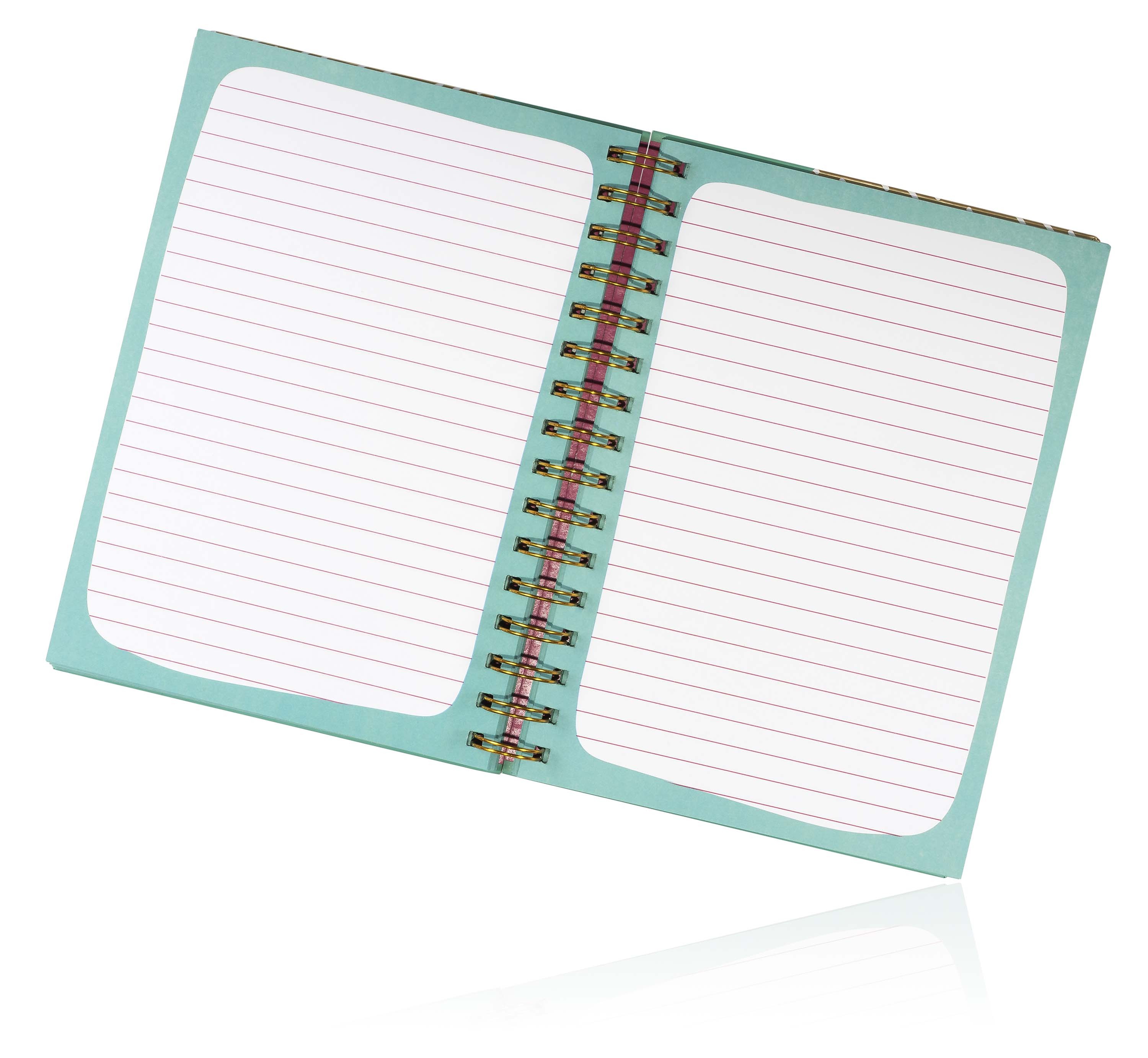 למחברת כריכה קשה בצבעי טורקיז וזהב