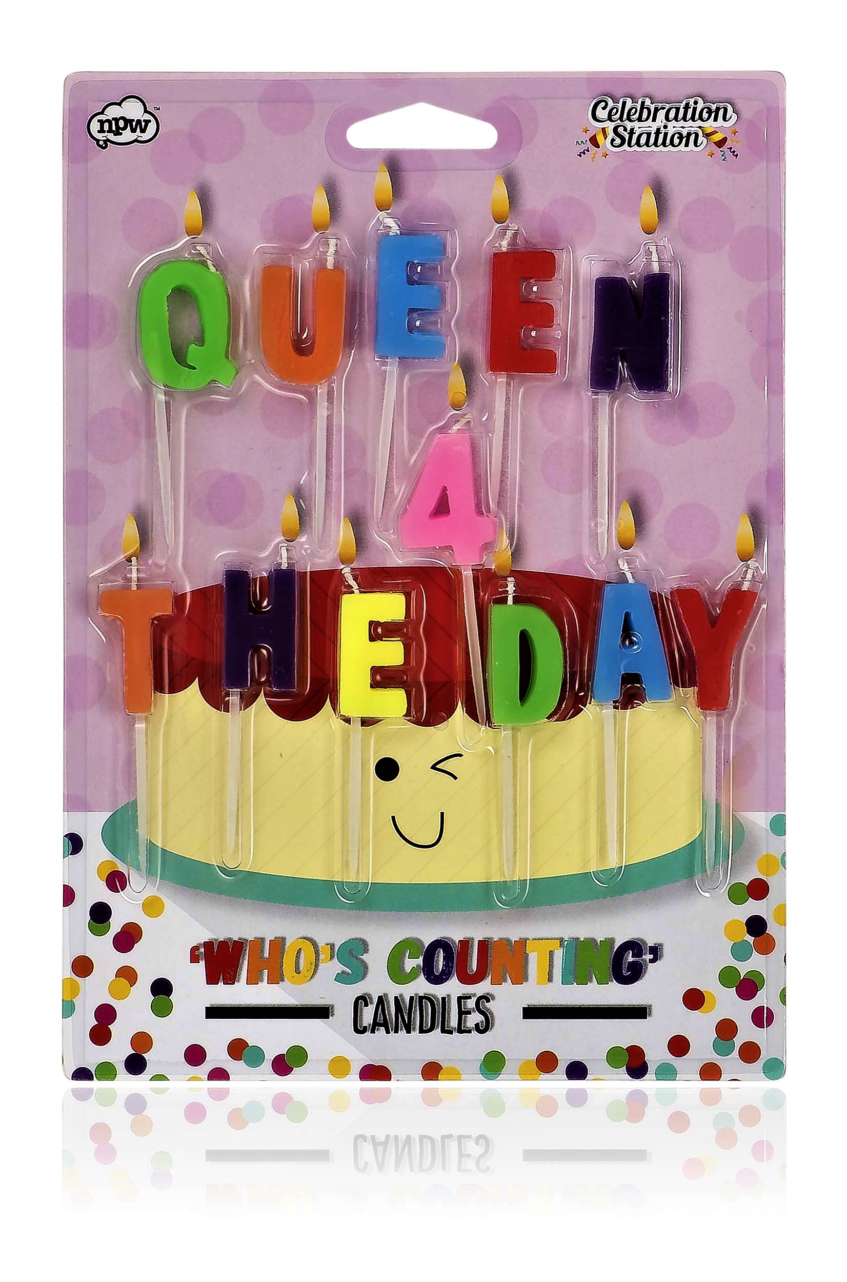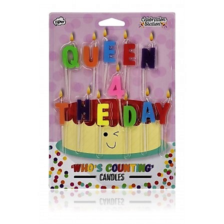 במסיבת הרווקות מגיע לה להרגיש מלכה. עכשיו זה אפשרי בזכות הנרות המושלמים ביותר לשים על העוגה. נרות צבעוניים המאייתים את הביטוי QUEEN 4 THE DAY, כיאה לנסיכה לפני החתונה. מכיל 12 נרות שעווה צבעוניים עם מקלות במבוק.